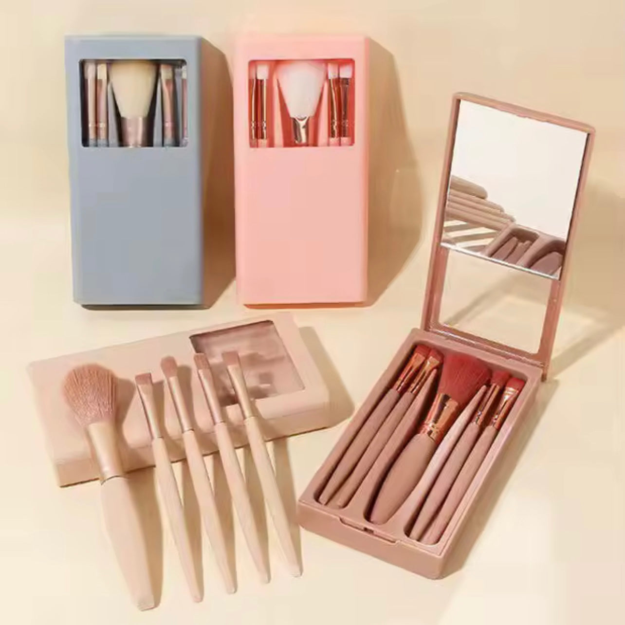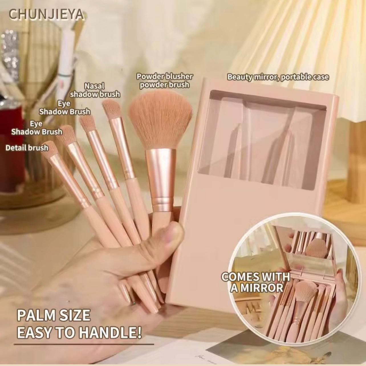 Achieve flawless makeup with this essential 5-piece brush set. Made with soft, high-quality bristles, each brush ensures smooth application and effortless blending for powders, blushes, eyeshadows, and more. โจ